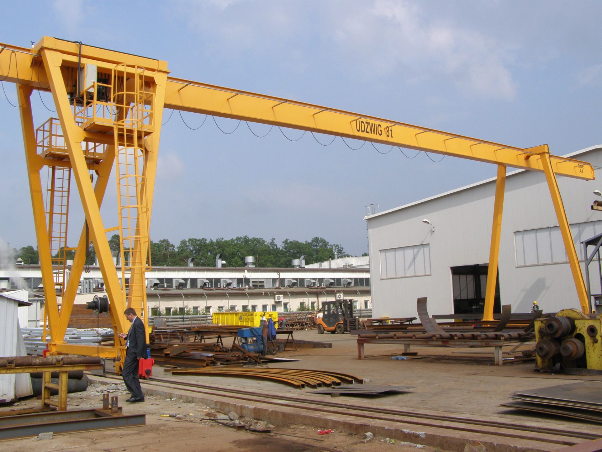 To sprawia, że suwnica bramowa jest z definicji urządzeniem plenerowym lub półotwartym: stoczniami, placami składowymi, terminalami kontenerowymi, składnicami drewna, zakładami prefabrykacji betonowej. Tam, gdzie nie ma zadaszenia lub gdzie budynek nie jest w stanie przenieść obciążeń od suwnicy pomostowej, bramowa jest jedyną sensowną opcją.